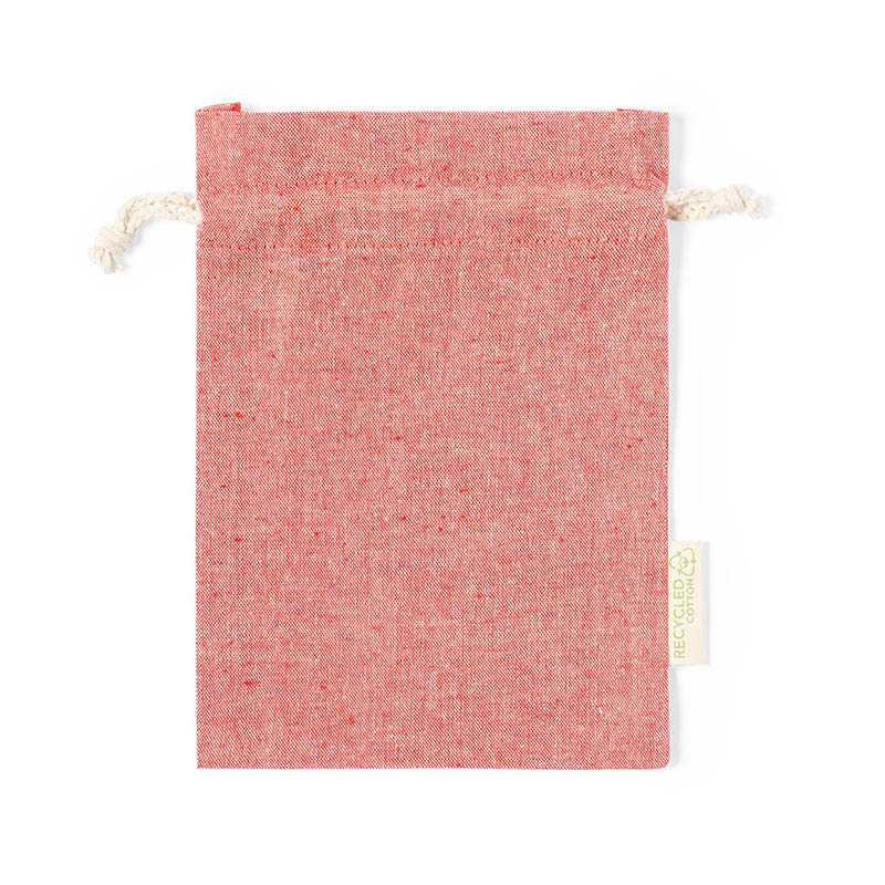 NOVINKA 2025. Eco-friendly bag made in resistant recycled cotton material of 120g/m2. GRS (Global Recycled Standard) certification, guaranteeing the recycled origin of the material used to manufacture the product. Cotton drawstring closure and stitched finish, including outside label with recycled cotton logo.