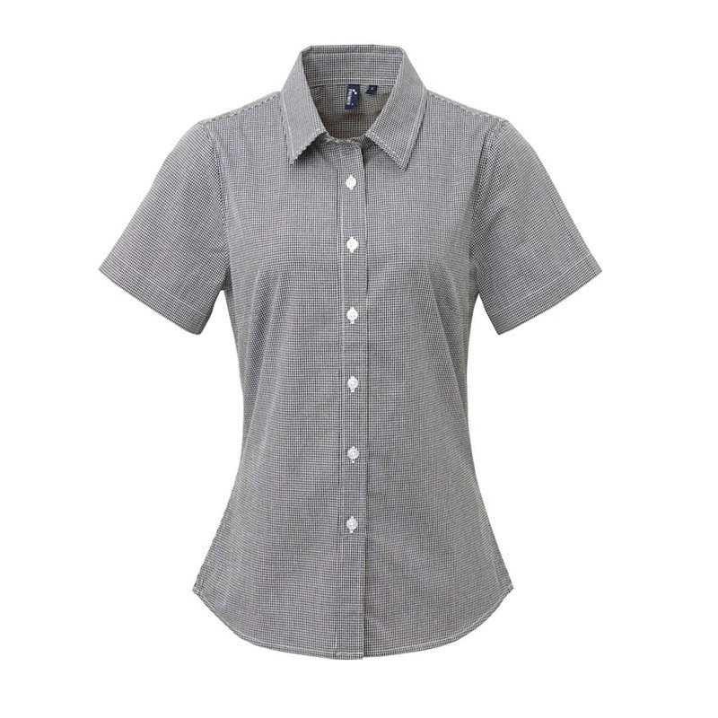 Tkanina.100% bavlněný popelín s barvenou přízí.115 gsm.Vlastnosti.Elegantní vzor Gingham.Měkké provedení u krku.Záševky na prsou a zádech.Zahnutý lem.Moderní střih.