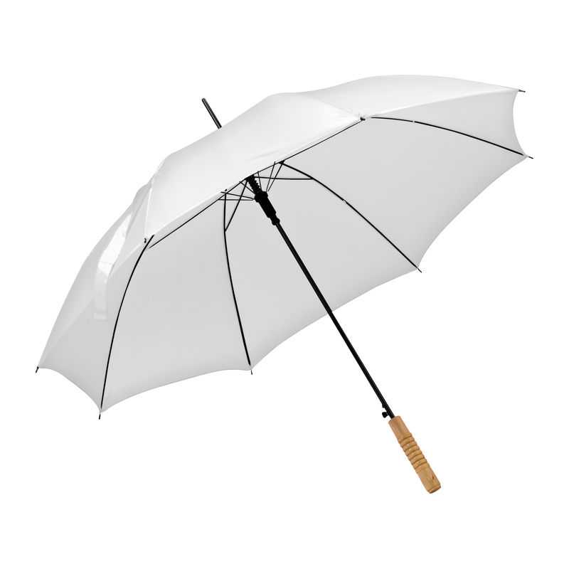 Deštník s automatickým otvíraním a s dřevěnou rukojetí v různých moderních uni barvách. Způsob potisku sítotisk.