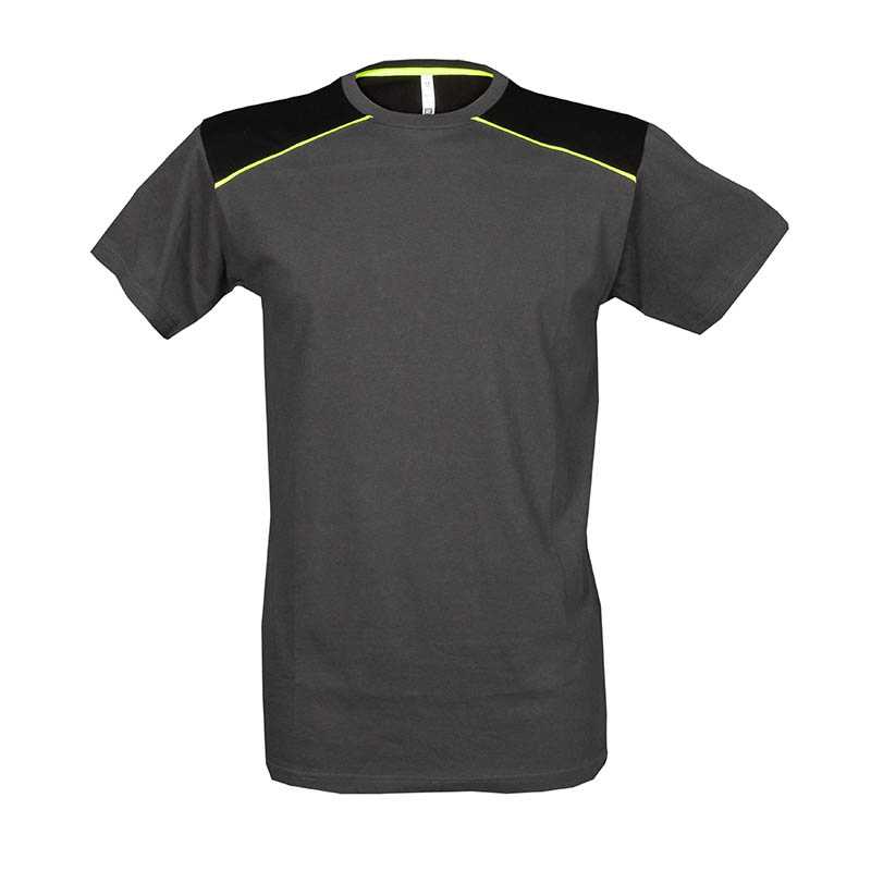 SHORT SLEEVE T-SHIRT - 100% combed cotton - Crewneck - Low collar h 1.2 cm - Fluo yellow inner neck tape - Fluo yellow front piping on the shoulders and on the back - Individually wrapped - Sold individually or in bags of 10 pieces