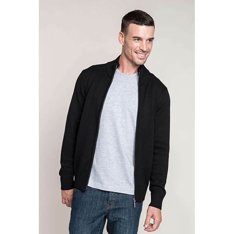 Full-Zip Thick Knitted Cardigan.Made of thick 100% acrylic knitted fabric, for a soft and comfortable feel with excellent breathability and optimal thermal insulation. Stand-up collar with full-zip front closure for effortless functionality and practicality.Thick elasticated ribbed cuffs and waistband for comfortably fitting.Two slanted waist pockets for convenient storage. Suitable marking methods: embroidery, stitching, and more. Ideal as workwear in chilly environments.