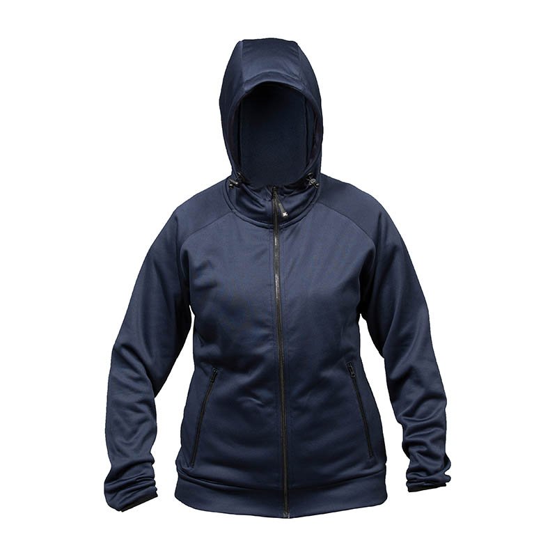 NOVINKA 2025. Sweatshirt 60% cotton - 40% polyester - Hood lining perforated and lanyards in contrast - Stand-up collar - Internal neck reinforcement tape with hanger hook - Long zip - YKK taped zippers - A chest pocket with zip with reflective taping - Two zip pockets - Raglan sleeves with abrasion resistant fabric on elbows and forearms - Cuffs and knit bottom in elastic rib - Riveted seams