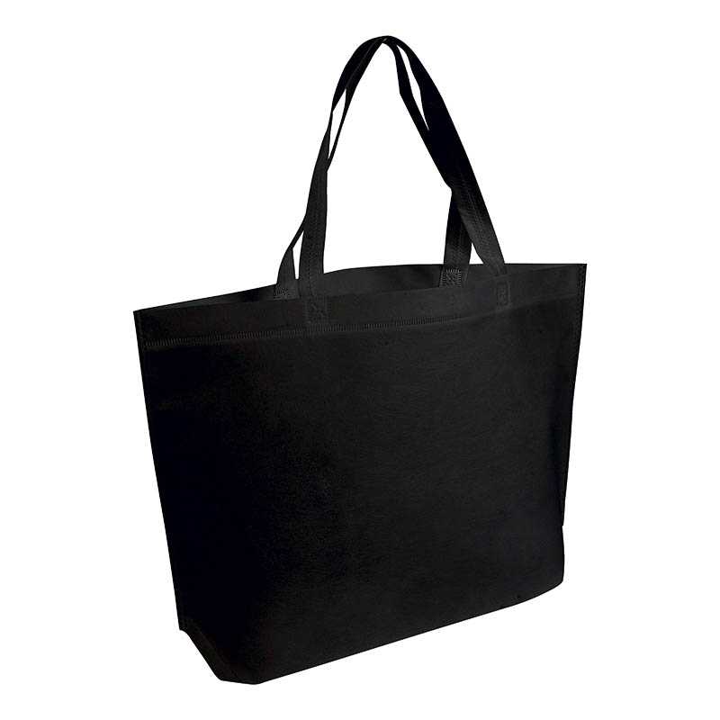 Velká taška z netkané textilie s gramáží 80 g/m2, silným křížovým prošitím, širokým dnem a dlouhými uši.