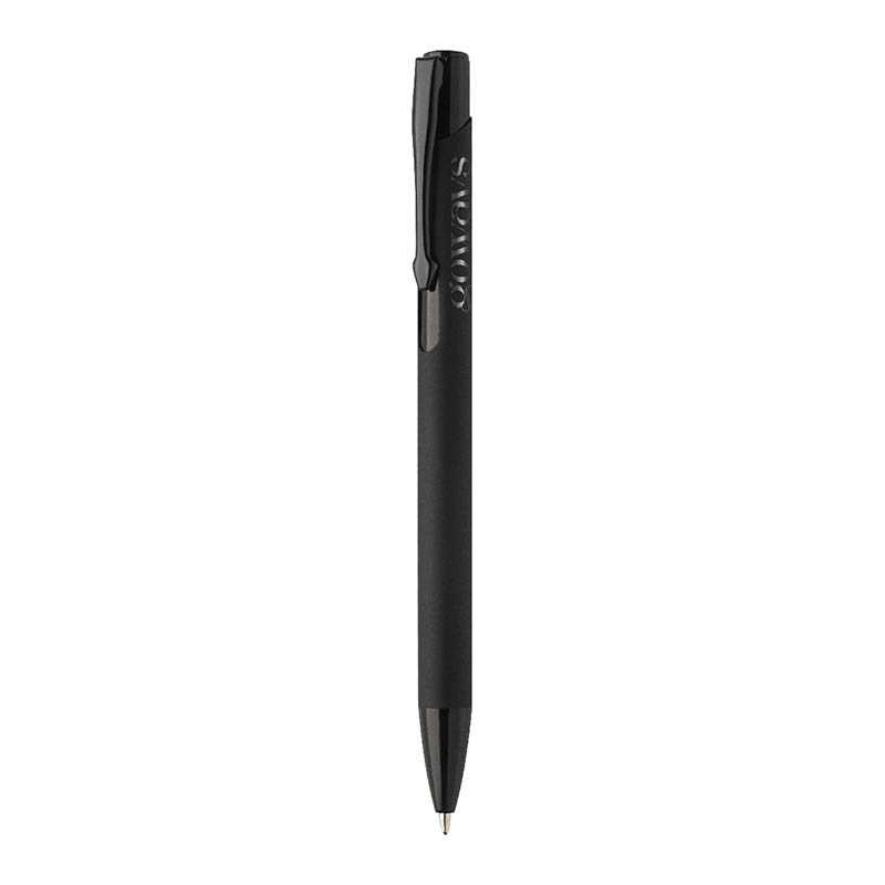 Hliníkové pero se stylusem. Logo má po vylaserování stejnou barvou jako stylus. Modrá náplň.