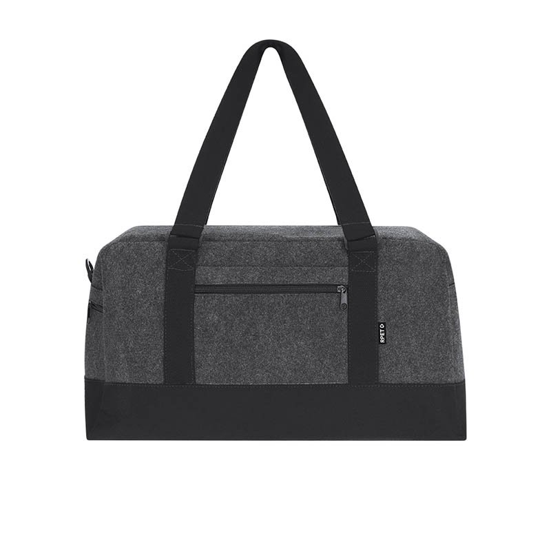 NOVINKA 2025. RPET felt bag. With a main compartment with a matching zipper closure and a black base, and an outer zipper pocket. Includes wide black handles, an adjustable shoulder strap to match, and an RPET label.RPET felt is the result of combining the recycling process of plastic materials with the ancient technique of felt making, resulting in an eco-friendly material that, in addition to being recycled, is also recyclable.