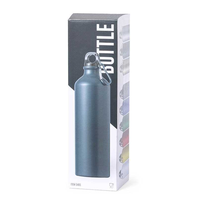 NOVINKA 2025. Aluminium bottle with a capacity of 800 ml. With screw-on safety cap and metal carabiner for easy transport. Original matt finish and available in a wide range of colours. Presented in an individual design box.