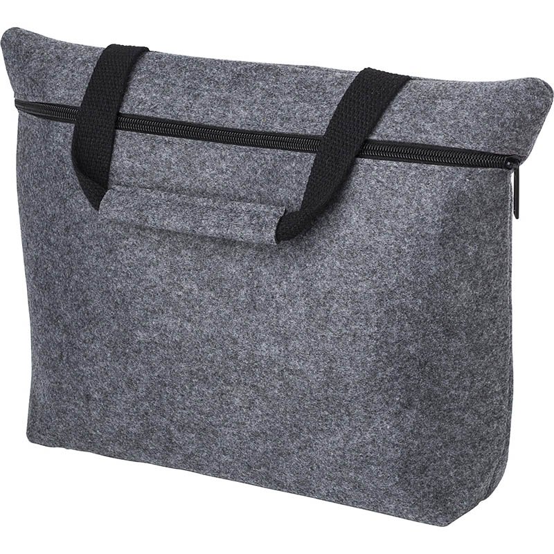 RPET felt document bag with laptop (15 inch) compartment which can be closed by zipper and a short handle.