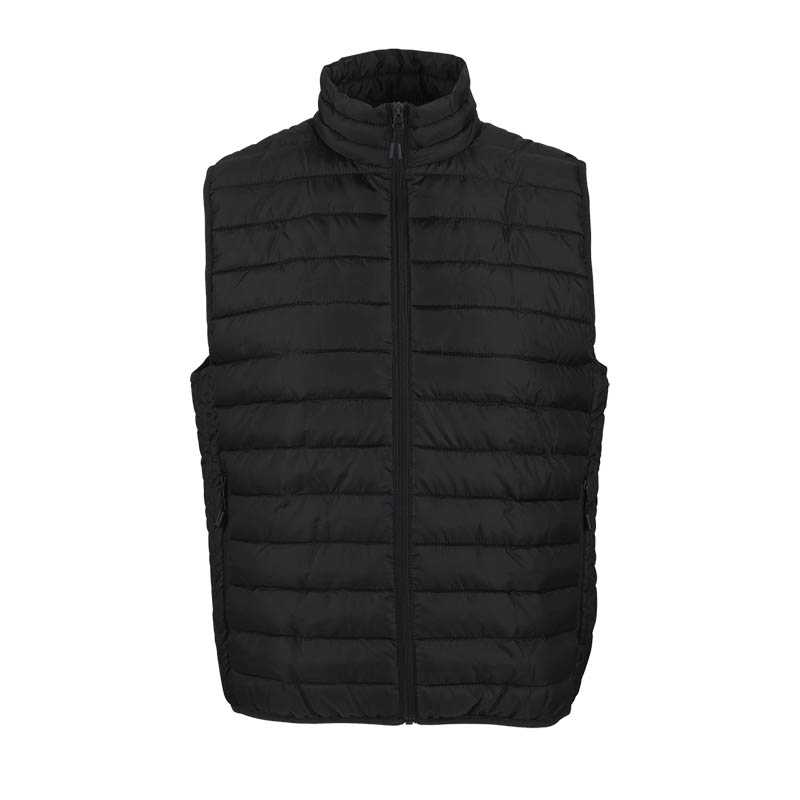 Quilted Vest with Pockets. Made of three-layered padded fabric and softshell fabric in sides and yoke. Stand-up double layer collar with full-zip front closure for warmth and comfort. Straight-cut waist with adjustable elastic drawstring and stopper for a better fit and added comfort. Two vertical zippered waist pockets and an inner velcro pocket for a secure and convenient storage.Includes an inside back zip for easy marking with different methods: screen printing, embroidery, transfer printing, badges, vinyl application. Ideal as workwear, promotional clothing and casual wear.