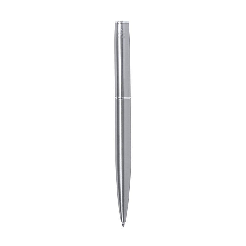 Kuličkové pero s pevným, lesklým pochromovaným tělem, s modrou náplní. Dodáváno v dárkové krabičce.