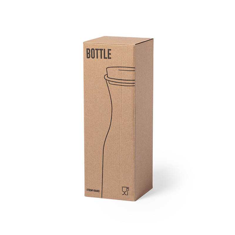 Borosilikátová skleněná láhev s bambusovým víčkem a silikonovým pouzdrem. Láhev má objem až 600 ml. Dodáváno v krabičce. Protože je výrobek vyroben z přírodních materiálů, barva a velikost výrobku a výsledek tisku se mohou u jednotlivých výrobků lišit. o68 x 231 mm