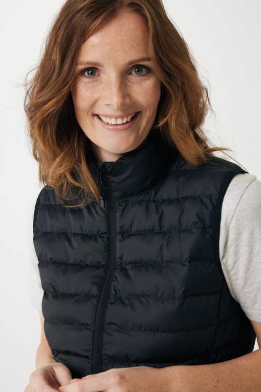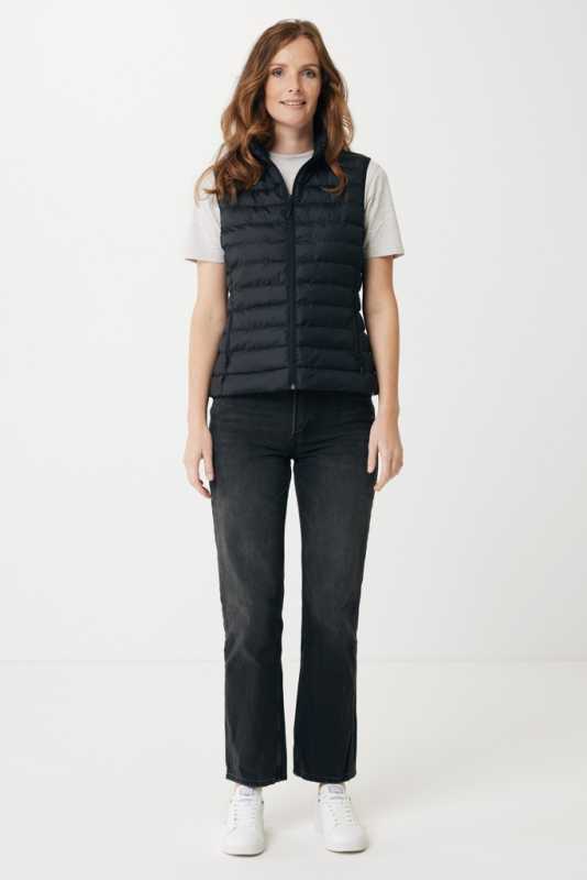 Dámská medium fit vesta vyrobená ze 100 % post-consumer recyklovaného polyesteru. Perlová výplň ze 100 % recyklovaného polyesteru. Oboustranný zip na přední straně, kapsy na zip po stranách. Tahače zipů v ladících odstínech. Průramky s elastickým lemováním s kompletně čistými švi. Vodě repelentní impregnace bez obsahu fluorinu/PFAS. Obsah recyklovaných materiálů je garantován díky využití technologie AWARE™, která kombinuje možnost skenování materiálu a technologii blockchain. Každý produkt Iqoniq vlastní unikátní štítek s QR kódem, který odkazuje na příslušný digitální pas produktu. 2 % z výtěžku každého prodaného kusu je darováno na Water.org. Certifikováno OEKO-TEX® STANDARD 100. Dostupné i v pánské variantě.