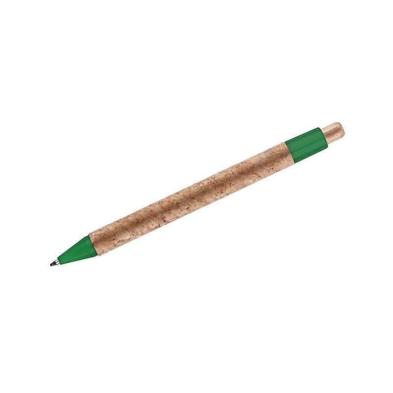Ekologické kuličkové pero se stiskacím mechanismem, tělem vyrobeným z korku a doplňky z pšeničné slámy v různých barvách. Pšeničná sláma je zbytkový materiál po sklizni pšeničného obilí. Snižuje množství použitých plastů a nabízí tak ekologičtější alternativu. Barva korkového materiálu se může různit.