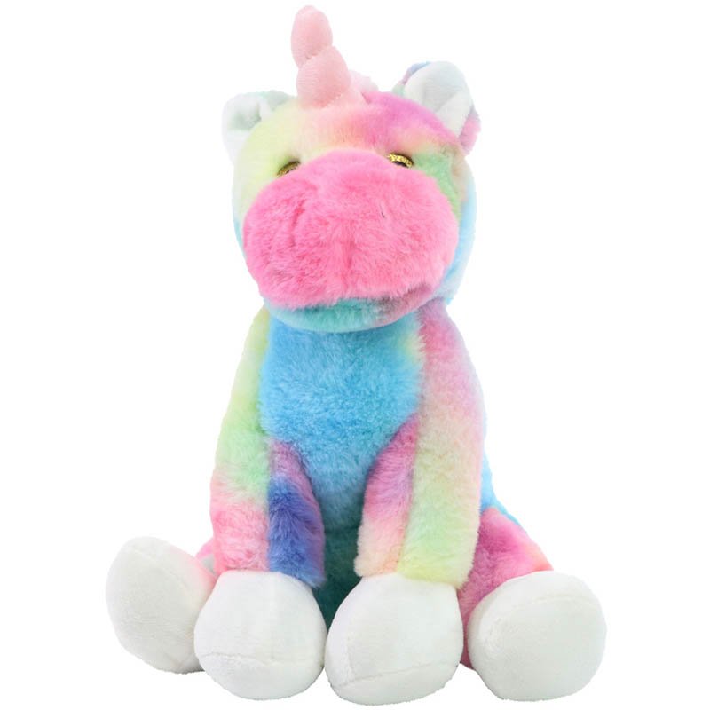 The unicorn Lulu has a fluffy, multi-coloured coat in soft colours.