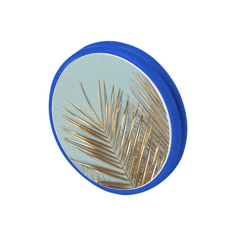 Kulatý, plastový stojánek na mobil s protiskluzovou úpravou a mincí do nákupního vozíku.