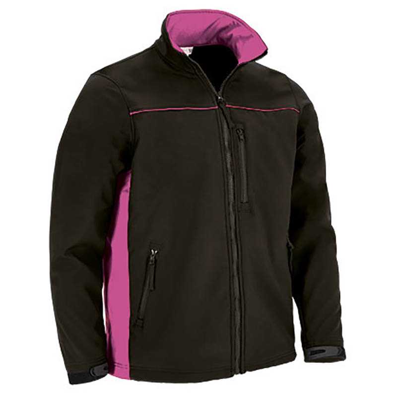 Softshell Jacket with Three Pockets. Made of extra thick three-layered stretch softshell fabric (a water-repellent outer layer, a breathable mid-layer and micro fleece inner layer) providing windproof and water-repellent properties, as well as excellent thermal insulation. Stand-up double layer collar with full-zip front closure including a chin guard for warmth and comfort.Adjustable cuffs with velcro, straight-cut waist with adjustable elastic drawstring and stopper for a better fit and added comfort. Two vertical waist pockets and a left chest pocket, all zippered, for a secure and convenient storage. Suitable marking methods: embroidery, stitching and anti-sublimation heat-stickers.Ideal as workwear, promotional clothing and casual wear.