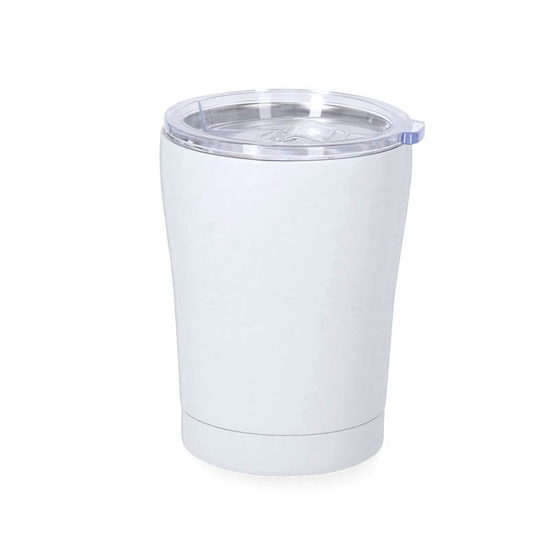 NOVINKA 2025. Insulated Cup made of double-walled stainless steel with a capacity of 350 ml. Exterior in rubber finish in matt finish, specially designed for laser branding. Including a transparent snap-on lid, with dispenser and easy-open, BPA free. It is ideal for your desk, table, or any surface where you can enjoy your favorite drink.