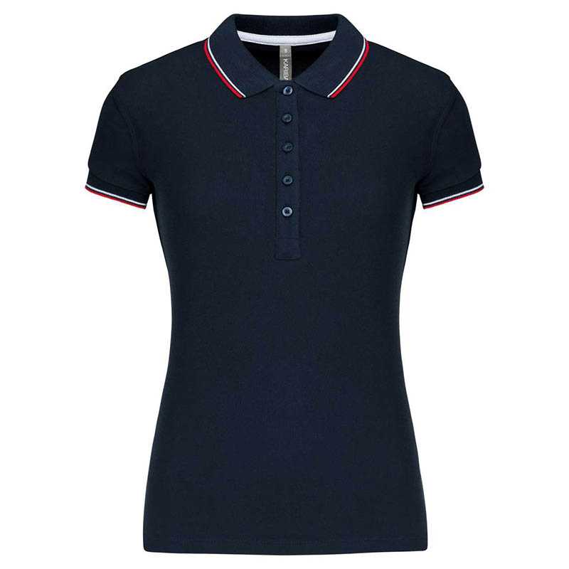 100 % piqué bavlna.5knoflíková léga.Kontrastní podšitý krk a boční rozparky.Žebrování s kontrastním lemováním na krku a manžetách.Úprava na lemu dvojitou jehlou.Certifikace v souladu s STANDARD 100 od OEKO-TEX® N° CQ 1007/7, IFTH.