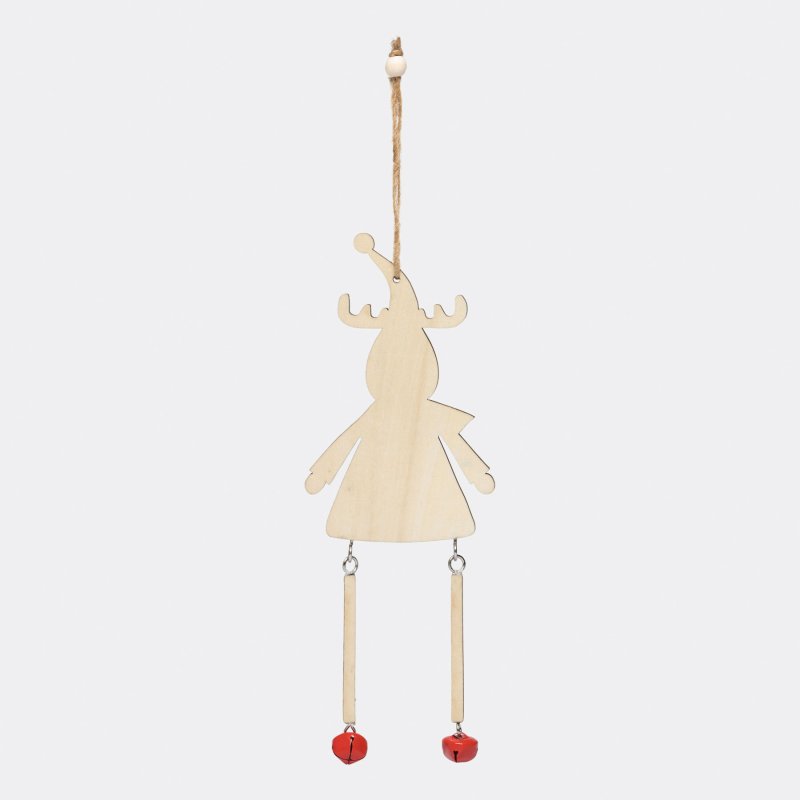 NOVINKA 2023 XMASS. Present / Christmas tree pendant WOODEN RUDOLPH : scarf in 3D optics, with movable legs and jute loop to hang up