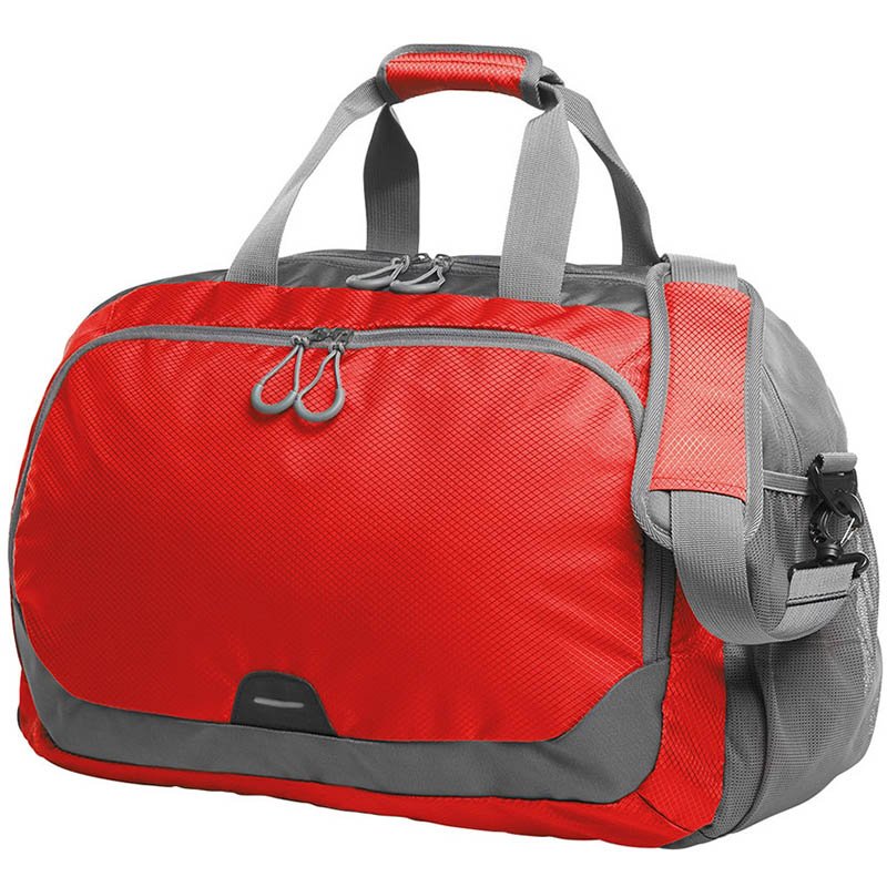 High quality sports/travel bag with 5 pockets and an adjustable shoulder strap. Made of water repellent, duo-tone 600D polyester with a chic yet subtle checkered finish. Capacity 30.5 litres.