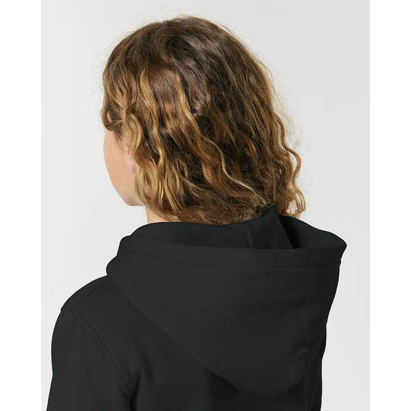 Set-in sleeve Self Fabric lined hood Single jersey tape at inside back neck seam Self fabric half moon at back neck with 3 mm twin needle Single needle topstitch at neckline seam 1x1 rib at sleeve hem and bottom hem 2 needle topstitch centered on sea