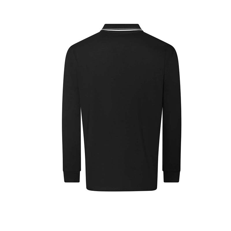 TWO-TONE LONG-SLEEVED POLO SHIRT - 100% combed cotton piqué - Collar, upper body and black sleeves - Ribbed collar and cuffs - Zipper with reflective tape and internal fabric for greater comfort - Contrast internal neck reinforcement tape - Reflective print on the upper back - Side vents with reinforcement tape - Individually wrapped