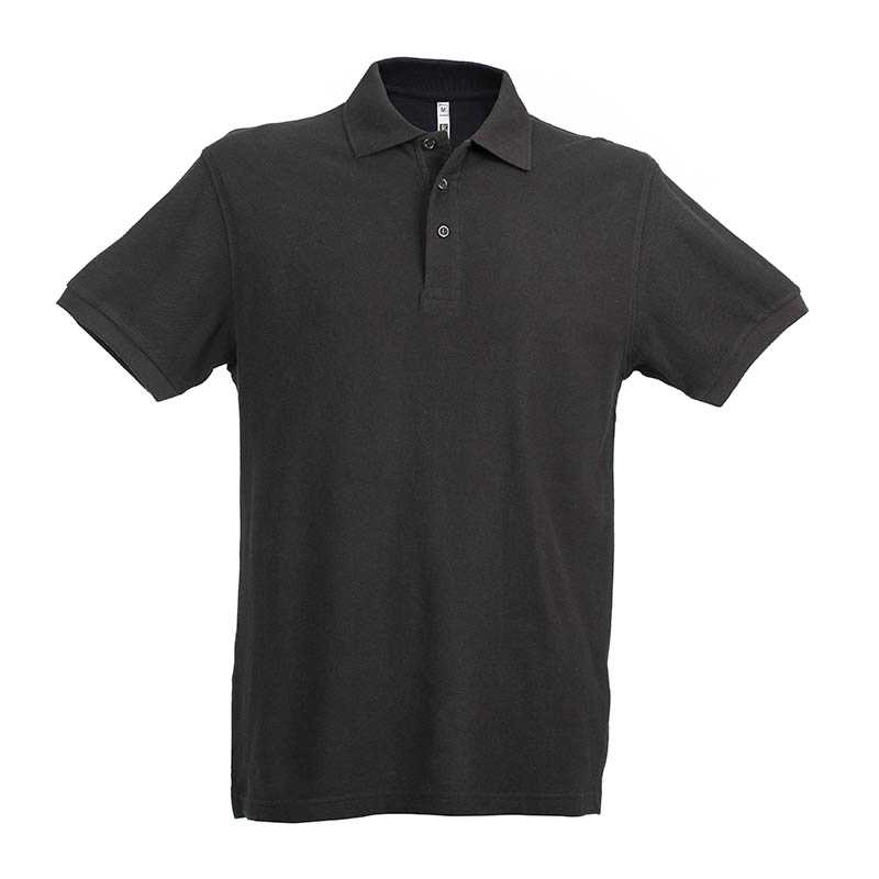100% piqué cotton (180 g/m2) short-sleeved polo shirt with two-button collar. Sizes: S/M/L/XL/XXL
