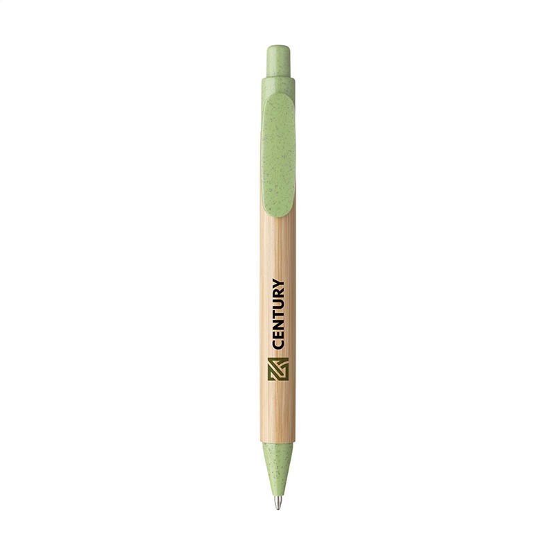 Pero kombinující 2 ekologické materiály vedoucí k jedinečnému designu. Pero je vyrobeno z bambusu, detaily z pšeničné slámy. Německá náplň s modrým inkoustem Dokumental® pro psaní až 1 200m textu. TC kulička pro příjemné psaní. Tělo pera je ze 100 % bambusu. Prvky z pšeničné slámy: 60 % pšeničná sláma / 40 % ABS.