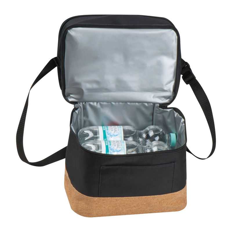 Chladiaca taška z RPET so samostatným korkovým dnom, prednou priehradkou, popruhom na prenášanie a extra priehradkou. Vhodné pre 6 nápojových plechoviek alebo fliaš s objemom 0,5 litra.