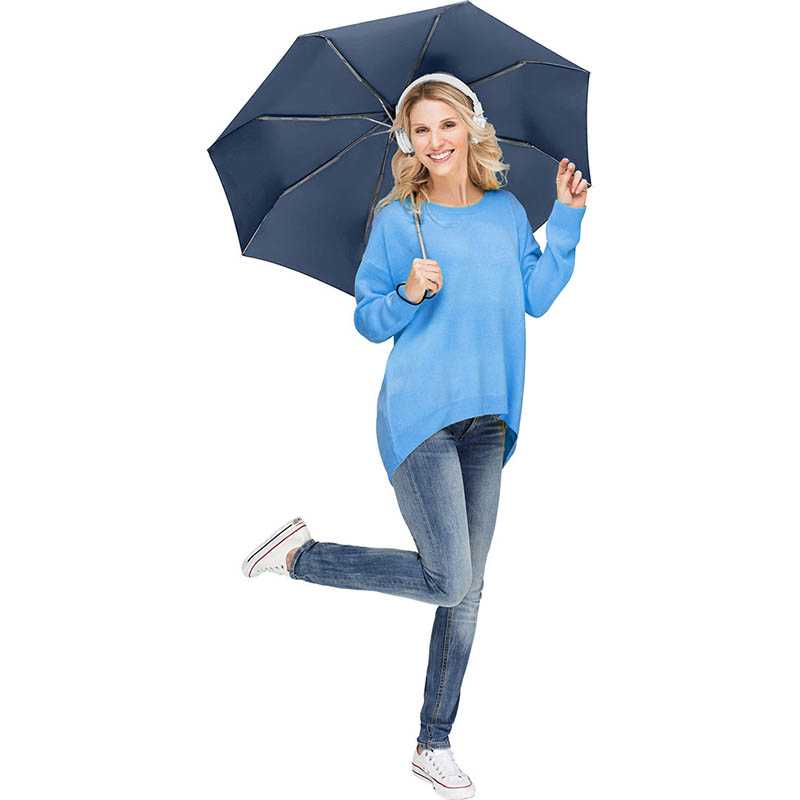 Convenient automatic open/close function for quick opening and closing, high-quality Windproof PLUS system for maximum frame flexibility in stormy conditions, comfortable Soft-Feel handle with integrated push-button, elastic loop and promotional labelling option