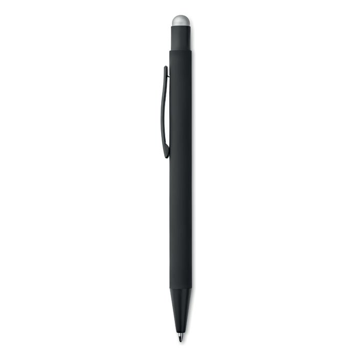 Aluminium ballpoint pen BLACK BEAUTY, with a large refill, touchscreen tip for smartphones and tablets, matt surface with coloured base for engraving matching the colour of the touchscreen tip, blue ink
