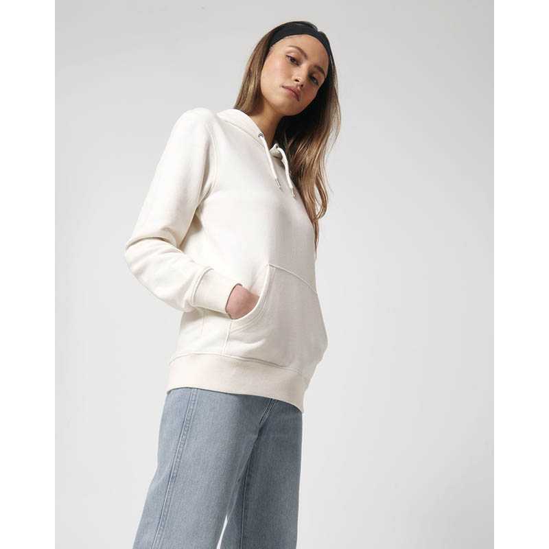 NOVINKA 2025. Set-in sleeve Double layered hood in self fabric Flat drawcords in matching body colour Embroidered eyelets Double needle topstitch on all seams 2x1 ribs at sleeves cuffs and bottom hem Kangaroo pocket at front Inside herringbone back neck
