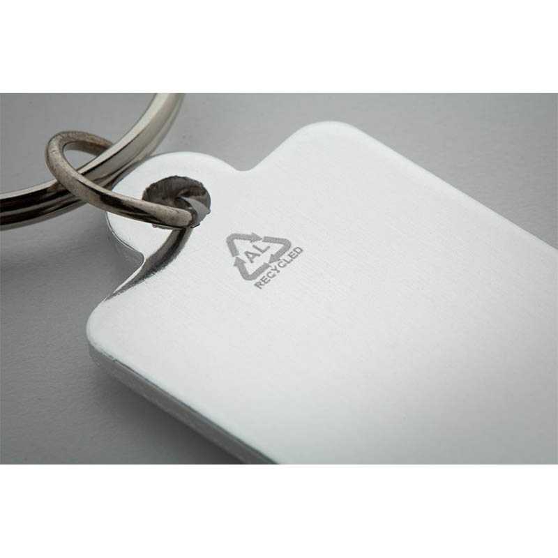 Přívěšek na klíče z recyklovaného hliníku s mincí do nákupního vozíku.