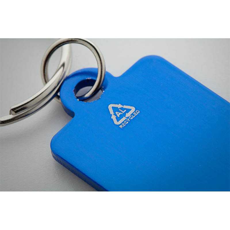 Přívěšek na klíče z recyklovaného hliníku s mincí do nákupního vozíku.