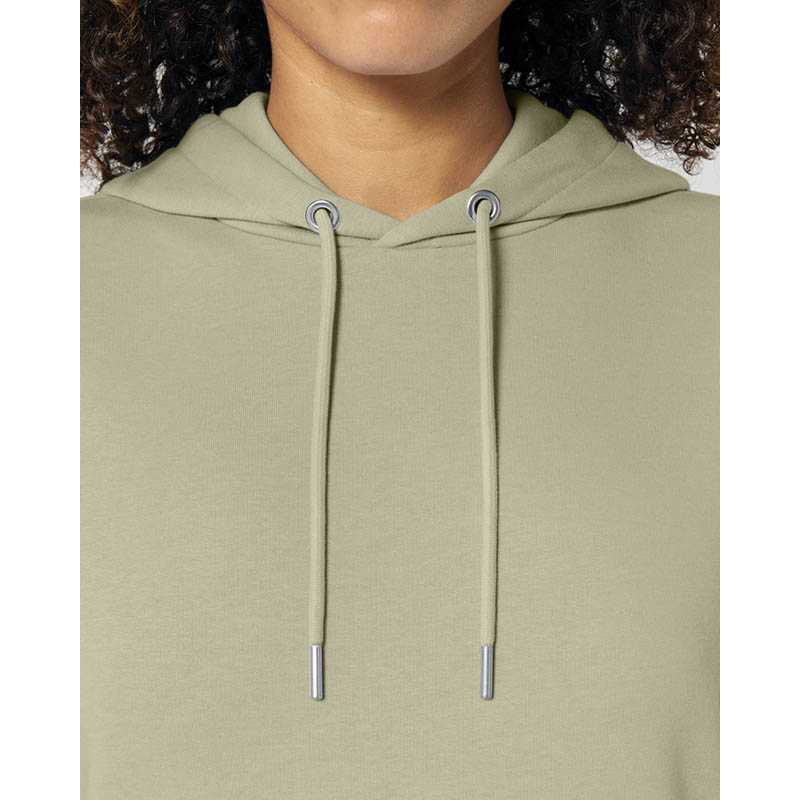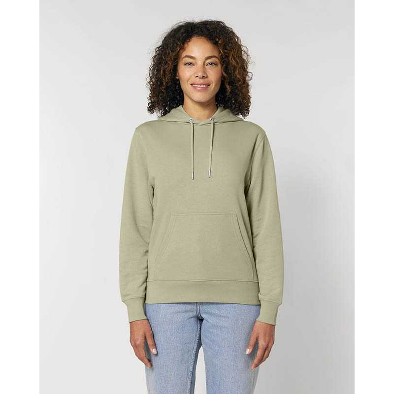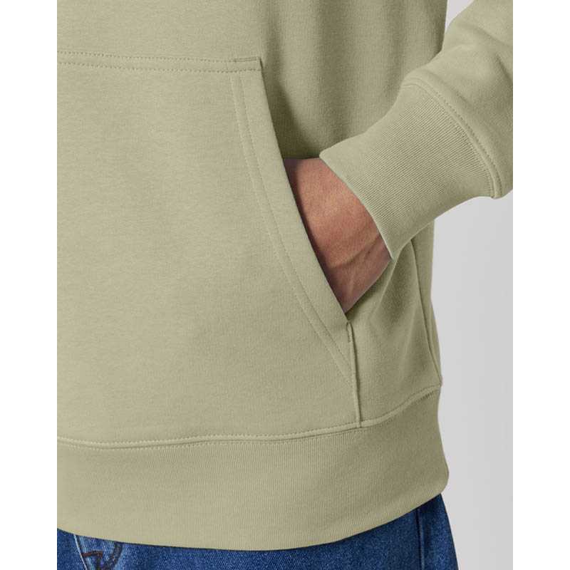 Kruhově dopřádaná bavlna. Designová dvouvrstvá kapuce. Velká klokaní kapsa. Kapsa na rukávu se zipem. Manžety ze sladěné tkaniny
