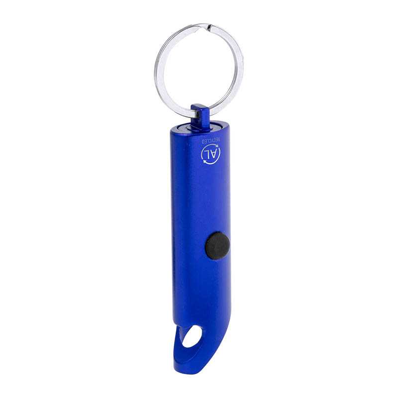 Mini svítilna z recyklovaného hliníku se 3 LED diodami, otvírákem na lahve a kroužkem na klíče. S knoflíkovou baterií.