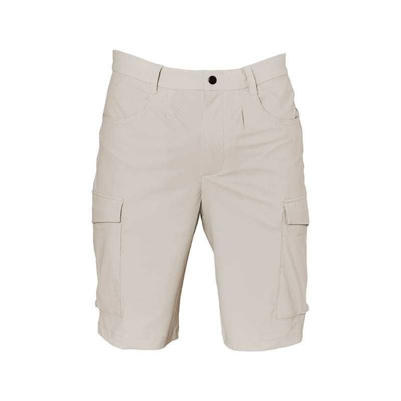 "Multipockets short pant in 98% cotton – 2% elastan - Pre-washed fabric - Two front pockets - Two leg-pockets with covered buttons - Two back-pockets with covered buttons - Elastic fabric at waist only for size 58/60 Weight 260 g/m?"