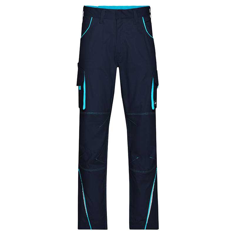 .Pracovní kalhoty v novém designu v klasické délce.Lehké a pohodlné díky přidanému elastanu.Ergonomický střih, elastický pas s poutky na opasek.Kapsy: několik kapes na nářadí, kapsa na metr.Poutko na tužku a kapsa na mobil.Reflexní prvky na přední i zadní