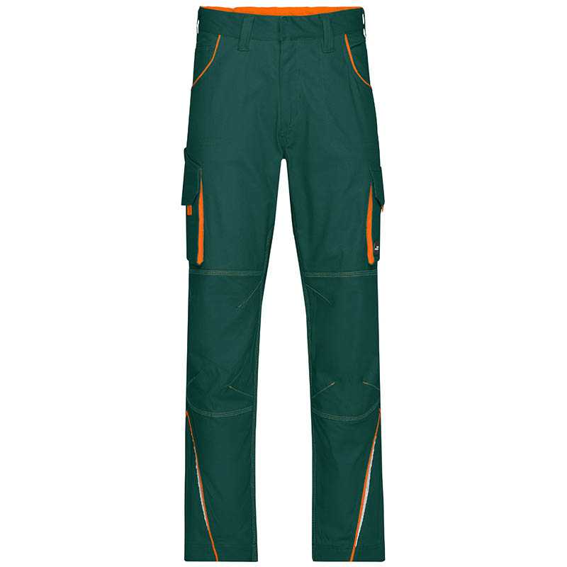 .Pracovní kalhoty v novém designu v klasické délce.Lehké a pohodlné díky přidanému elastanu.Ergonomický střih, elastický pas s poutky na opasek.Kapsy: několik kapes na nářadí, kapsa na metr.Poutko na tužku a kapsa na mobil.Reflexní prvky na přední i zadní