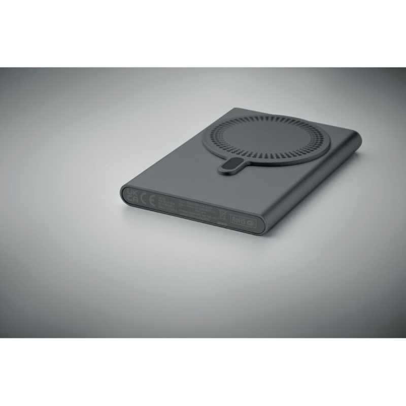 NOVINKA 2025. Magnetická bezdrátová nabíječka (15W) a powerbanka (5000 mAh) z recyklovaného hliníku. Výstup: DC 9V/1,66A. Podporuje technologii rychlého nabíjení (20W). Vstup/výstup: Type-C. Podpora technologie Power Delivery (PD) pro nabíjení nejnovějšíc