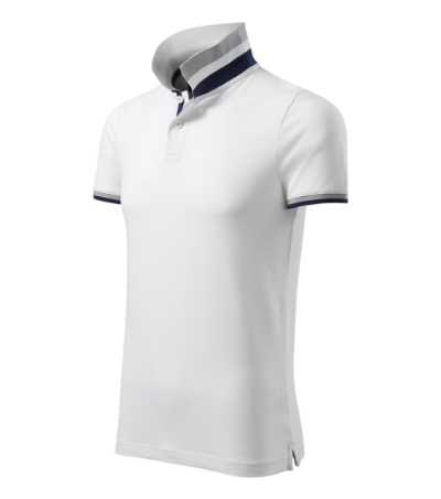 střih s bočními švy, límeček a lemy rukávů z žebrového úpletu 1:1, spodní část límečku a lemy rukávů s kontrastními pruhy, léga s 2 knoflíčky v barvě materiálu, rozparky v bočních švech a spodní léga s kontrastní páskou, vnitřní průkrčník začištěn kontras