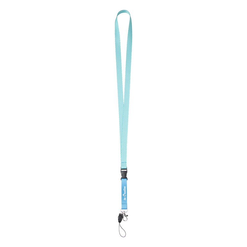 RPET lanyard na zakázku s 100 cm metrem a kovovou karabinkou, bezpečnostní přezkou a šňůrkou na mobil. Cena zahrnuje sublimační potisk na obou stranách, nezahrnuje tiskovou přípravu. Min. mn.: 100 ks.