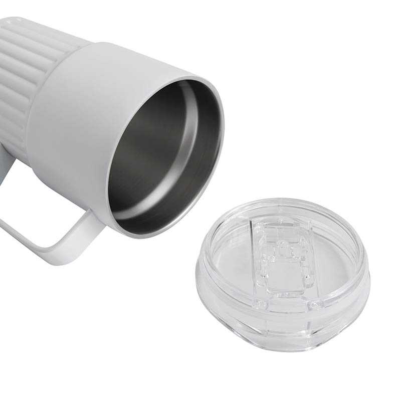 NOVINKA 2025 XMASS. Vacuum drink mug WAVE HOLD, double-walled: inside made of recycled stainless steel, outside made of stainless steel, practical handle, plastic lid with silicone sealing ring and integrated sliding drinking opening, capacity approx. 450
