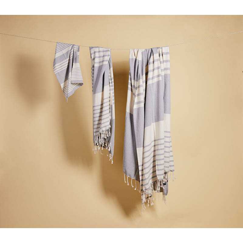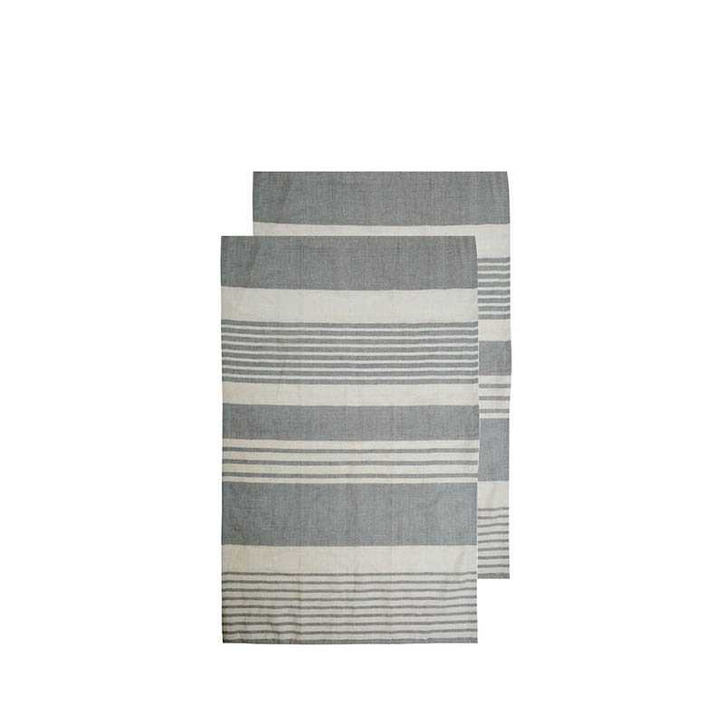 Ella hamam is a classically patterned kitchen towel made of thin, woven recycled cotton (70%) and polyester (30%). The striped patterns are characteristic for Sagaform and vary with the colours. Available in soft tones of blue, green, yellow and grey. The towel dries quickly and is simple to hang. Easy to roll up and bring to the beach, the pool or the training. Looks lovely together with Eden hamam. Available in sizes 50x70 cm, 90x170 cm and 145x250 cm. Packaged in nice paper girdle. Material: 70% recycled cotton, 30% polyester Weight: 100 g Width:70 cm Color: Grey