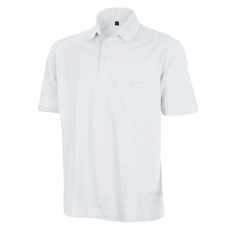 3 button reinforced placket Chest pocket Ripple effect flat knit collar and cuff Drop sleeve Longer back length Reinforced side vents Chest pocket Critical twin needle stitching Tough and hardwearing Ready to brand - tag free Mechanical stretch fit