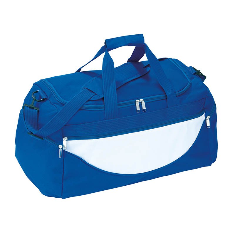 Sports bag CHAMP: with zipped main pocket, white front pocket with zip, side pockets with zip, strong carrying handles and an adjustable and removable shoulder strap with shoulder pad