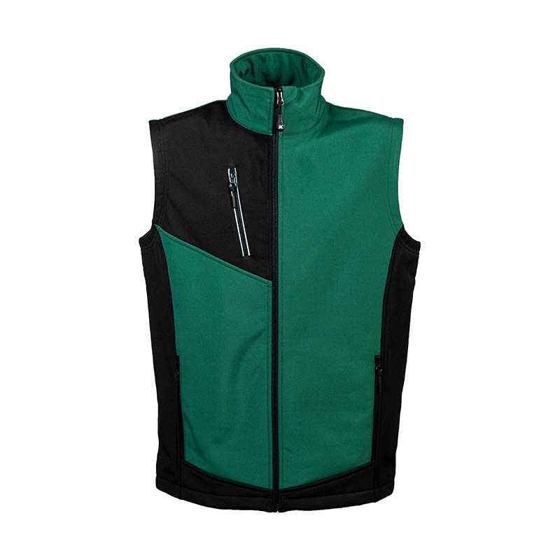 "Soft shell waistcoat waterproof and breathable - 100% Polyester - Waterproof-6000 mm/H2O - Resistance to moisture g/m2/24h 4000 - Wind and cold resistant - Waterproof zippers - One chest pocket with zipper and fold-away badge-pocket - Two outside zip-pock"
