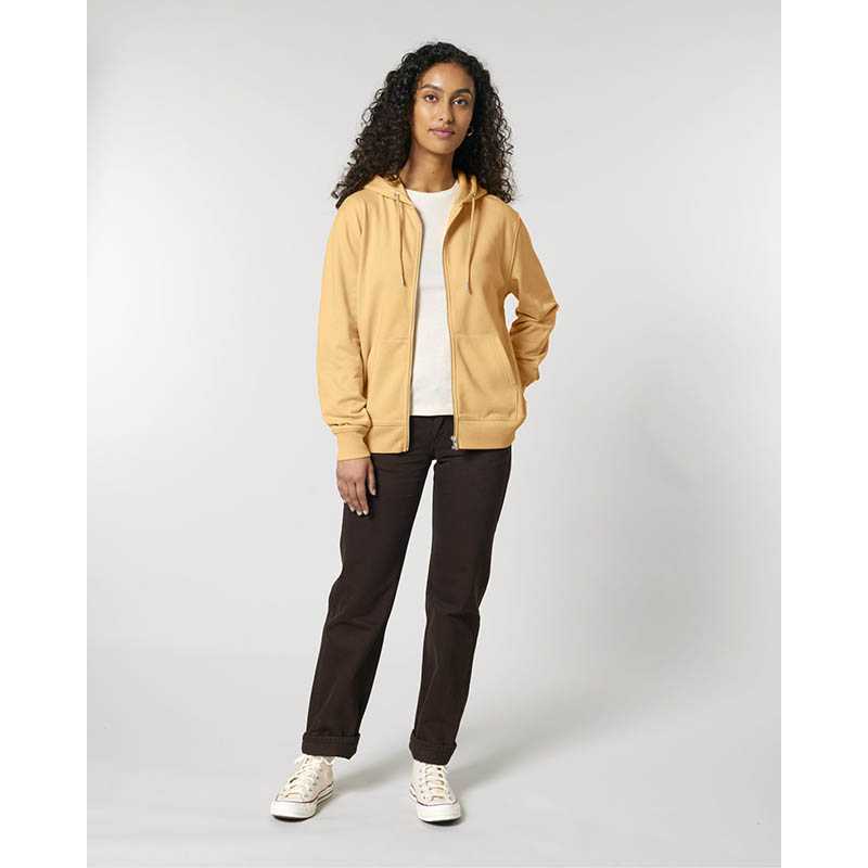 rovný střih s bočními švy, kapuce s podšívkou, kapsy na zip, kapsa na rukávu, dolní lem a manžety rukávů z žebrového úpletu, vnitřní strana počesaná, Tricorp číslo produktu: 304001.American fleece, 80 % bavlna, 20 % polyester.