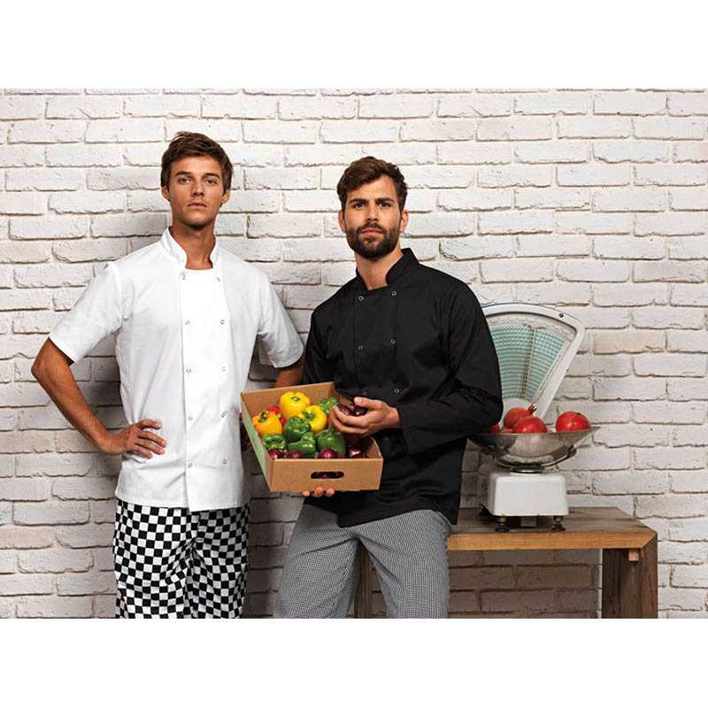 Long Sleeve Lab Coat with Straight Cuffs. Made of 100% cotton twill fabric that provides durability, strength, breathability and a comfortable feel. Shirt collar with wide V-neck, for optimal comfort and a refreshing feel. Button front closure and a waistband with sewn-on tape at the back for added comfort. Two front pockets, a left chest patch pocket for convenient storage and showcase the branding.Suitable marking methods: screen printing, vinyl application, transfer printing, embroidery.Ideal as workwear and uniforms.