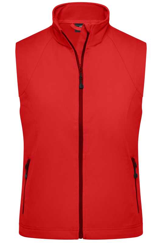 Módní dámská softshellová vesta James & Nicholson.Vyrobená z 95% polyesteru a 5% elastanu..Funkční 3-vrstvy tkaniny s PU membránou - větru odolná, prodyšná a vodě odolná (5.000 mm vodního sloupce) .Lehce zúžená, uvnitř mikro fleece, vnitřní síťovina v pře
