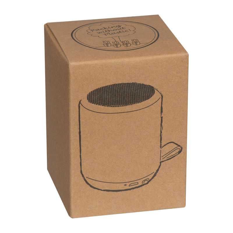 Přenosný reproduktor vyrobený ze recyklovaného hliníku (100% rAL) a recyklovaného ABS (100% rABS). S bezdrátovým přenosem BT v5'0 a čtečkou karet micro SD. S 3W zvukového výkonu a 400 mAh baterií má autonomii přibližně 3 hodiny. Umožňuje vám přijímat hovory díky vestavěnému mikrofonu, ovládat hlasitost a seznam skladeb vašeho mobilního zařízení. Součástí je nabíjecí kabel USB-C. Dodáváno v dárkové krabičce z recyklovaného kraftového papíru, kterou lze znovu použít jako držák smartphonu. Pokud nezvolíte žádné přizpůsobení, mřížka se dodává volně uvnitř dárkové krabičky. Po připojení k reproduktoru nelze mřížku znovu odstranit. o71 x 42 mm | Krabička: 80 x 80 x 60 mm